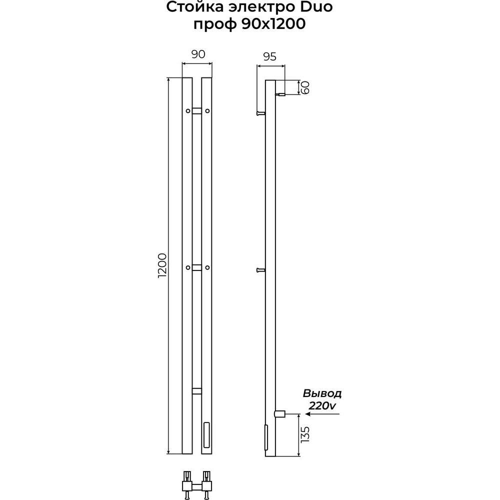 Полотенцесушитель Стойка DUO проф 1200 Электро черный Терминус 4670078561893
