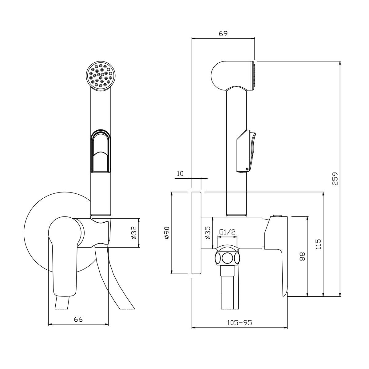 Смеситель Rossinka W25-51 с гигиеническим душем встраиваемый