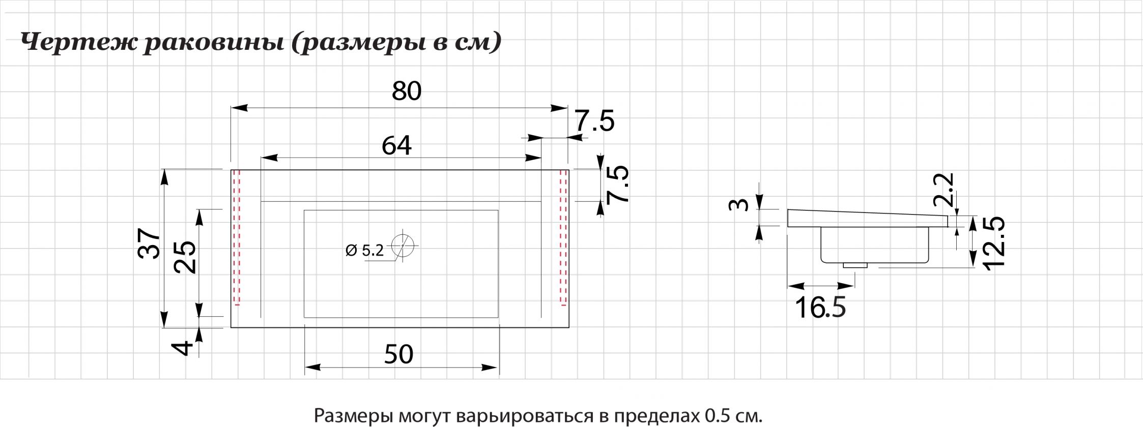 Раковина для тумбы De Aqua Кубика 80 WK 020 НФ-00007383