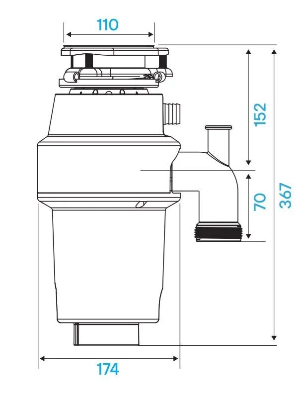 Измельчитель пищевых отходов Kuchenstern Muhle 550, 351MU35, 550 Вт, пневмокнопка нержавеющая сталь