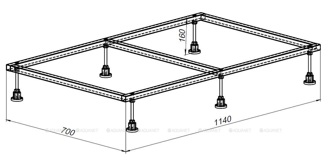 8.00003 Каркас для литьевого поддона 1200х800, монтаж.размер 1140х700мм, алюминий