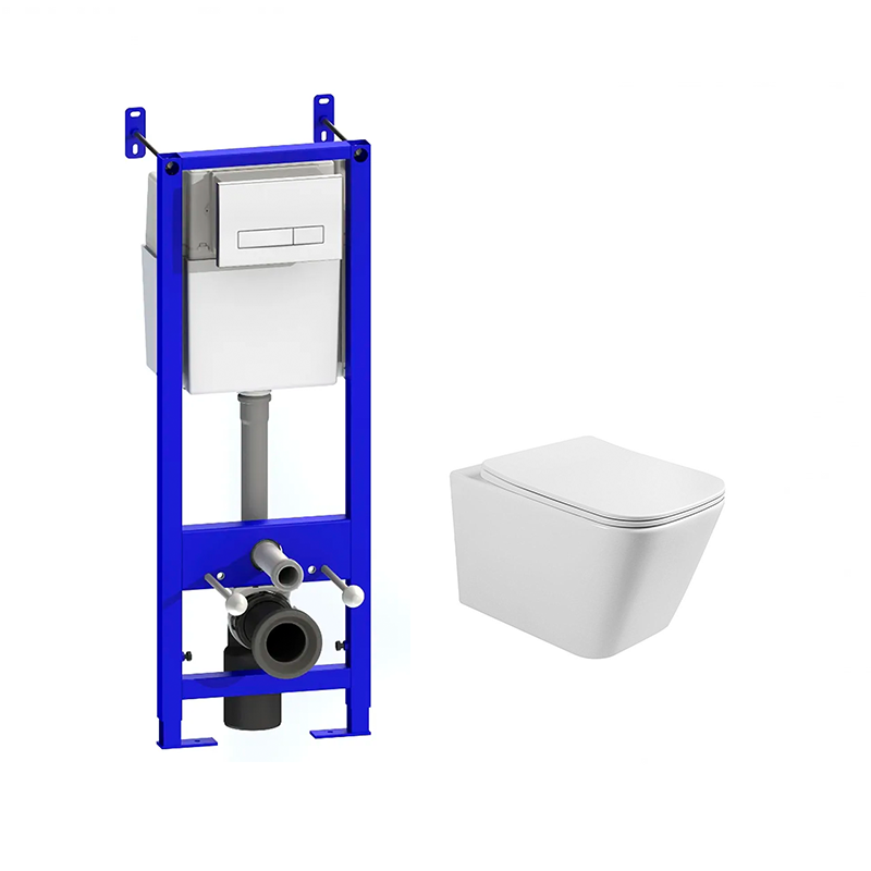 Инсталляция УКЛАД для унитаза с белой кнопкой СИ 01.04.54.10.0 +Унитаз подвесной SANITECO Tornado UF безободковый 510х370х340 мм (M205) СИ 01.04.54.10.0+M205
