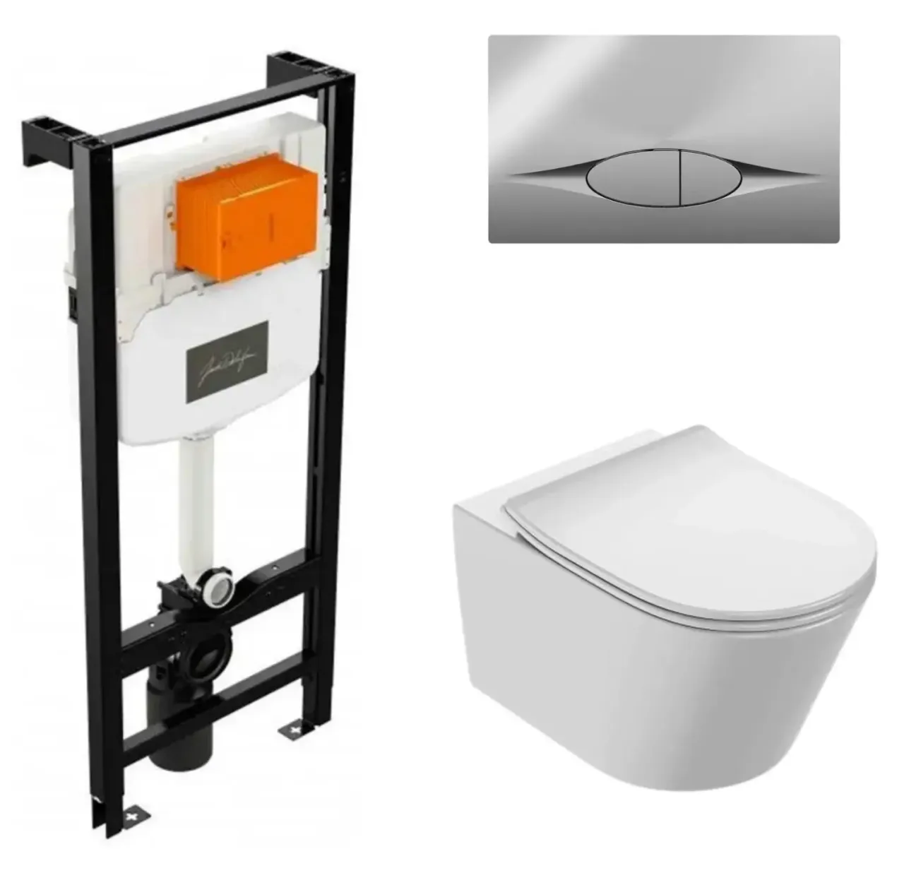 Комплект 4в1: Инсталляция, панель смыва E29027-CP, унитаз с крышкой-сиденьем Jacob Delafon Bastille