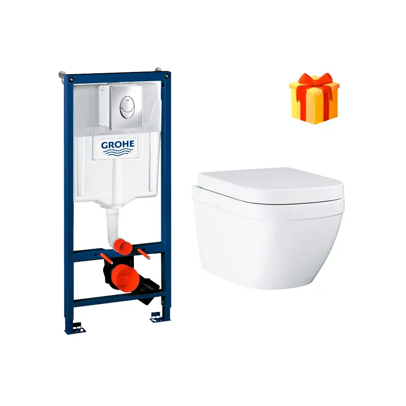 Набор Grohe 4в1: подвесной безободковый унитаз Euro+инсталляция с панелью смыва 305190 тг. 339100 тг.
