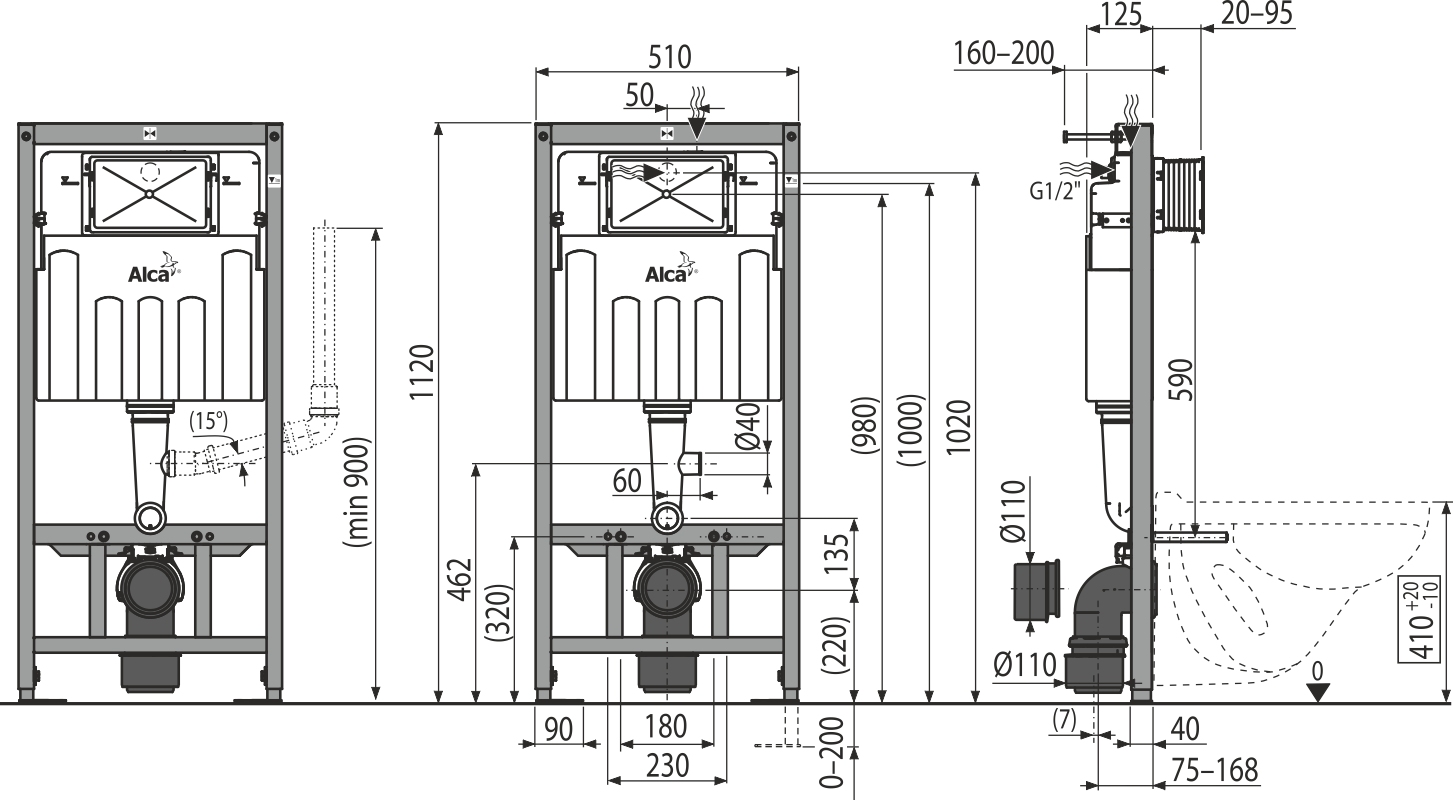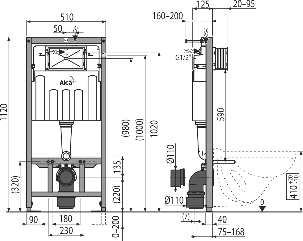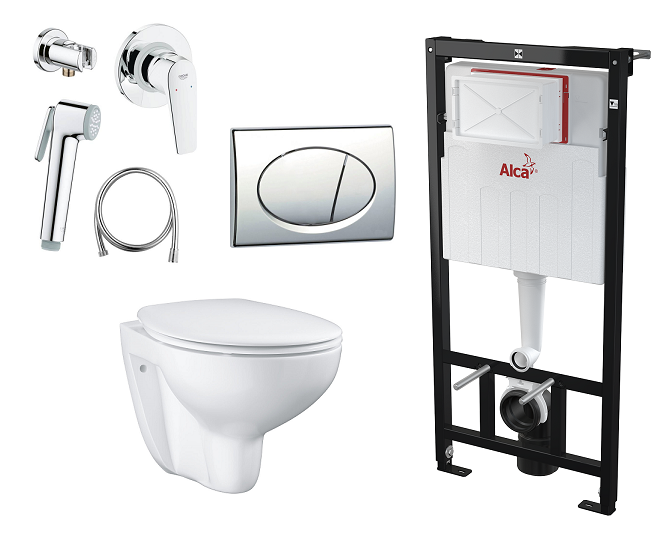 Набор AlcaPlast+Grohe 5в1 K21100602: инсталляция Sadromodul с кнопкой Alca, унитаз с сиденьем и гиг.душ BauFlow