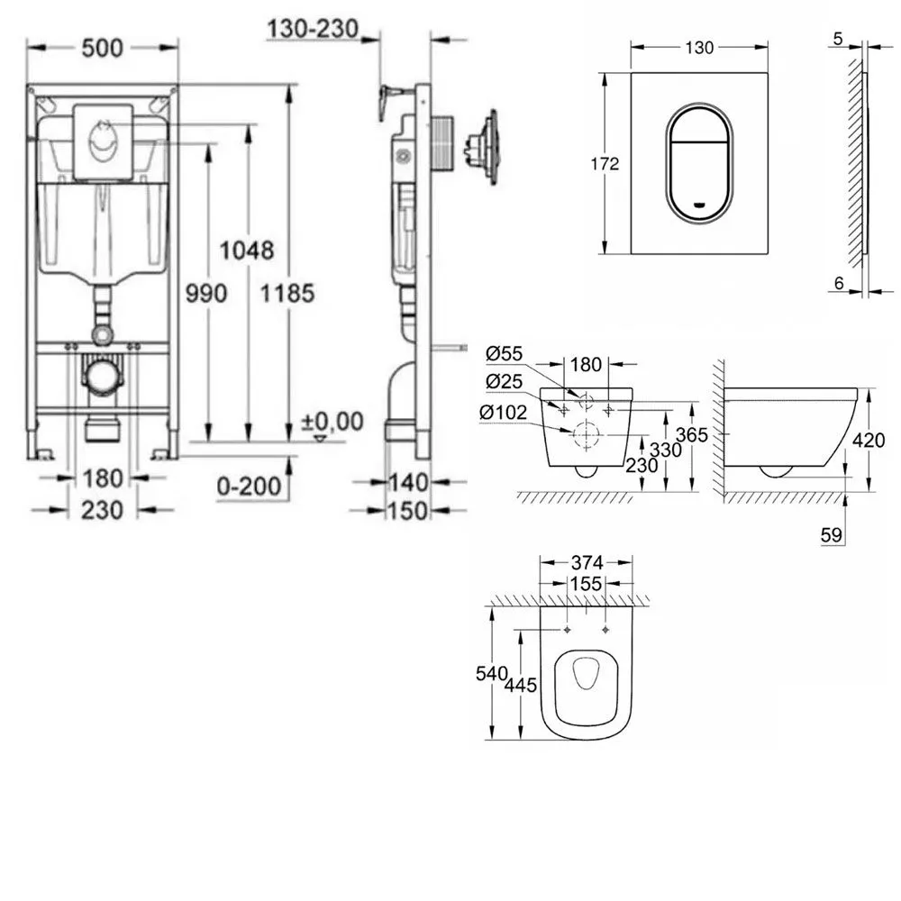 Комплект инсталляции Grohe, подвесного безободкового унитаза Cetus Figura 3318 168890 тг. 183150 тг.