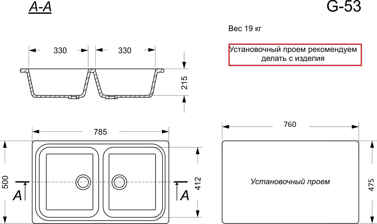 | Отверстие под перелив | Есть |