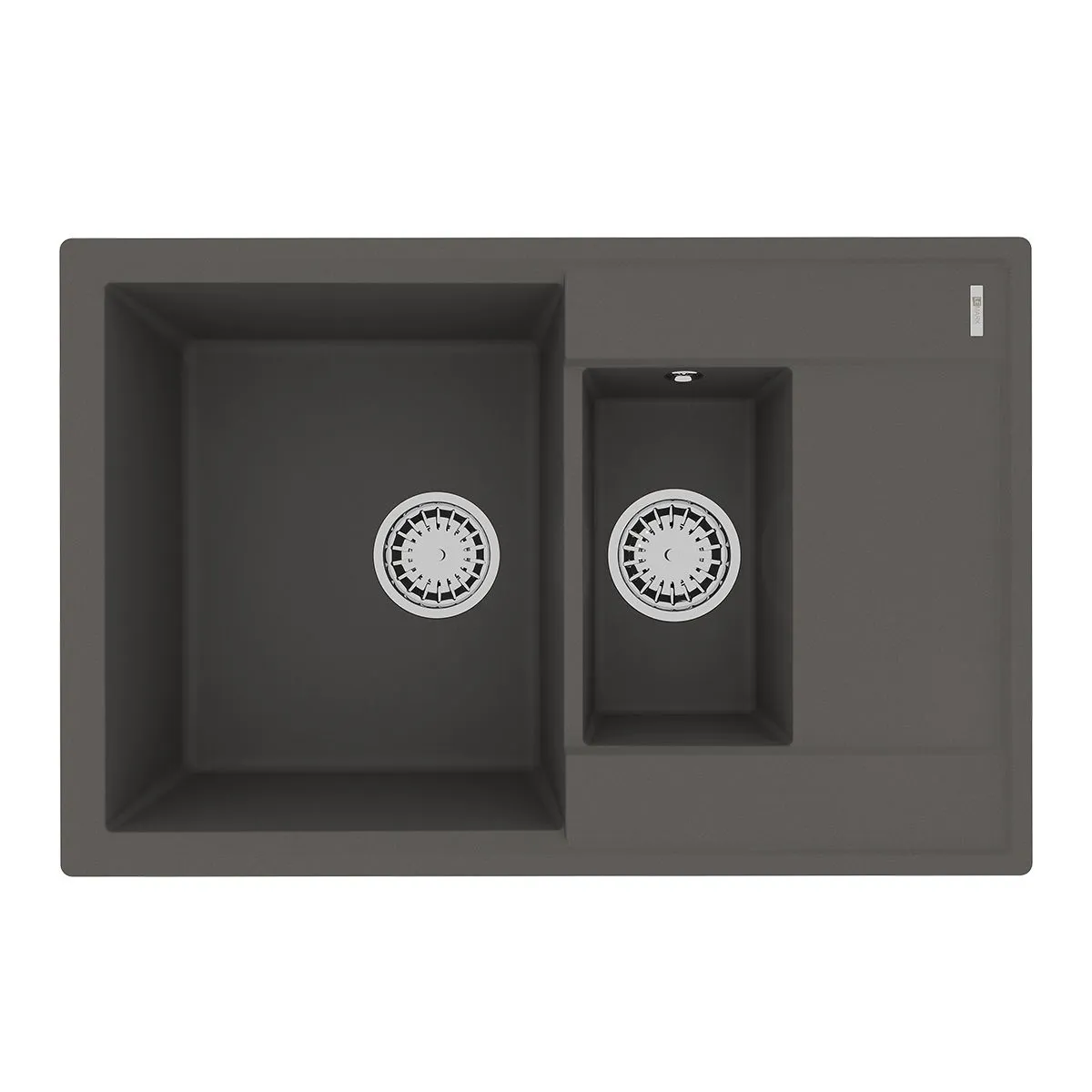 Кухонная мойка Lemark RAMZA 760 врезная прямоугольная с доп.чашей и крылом из кварцгранита цвет: Серый шёлк 9910041