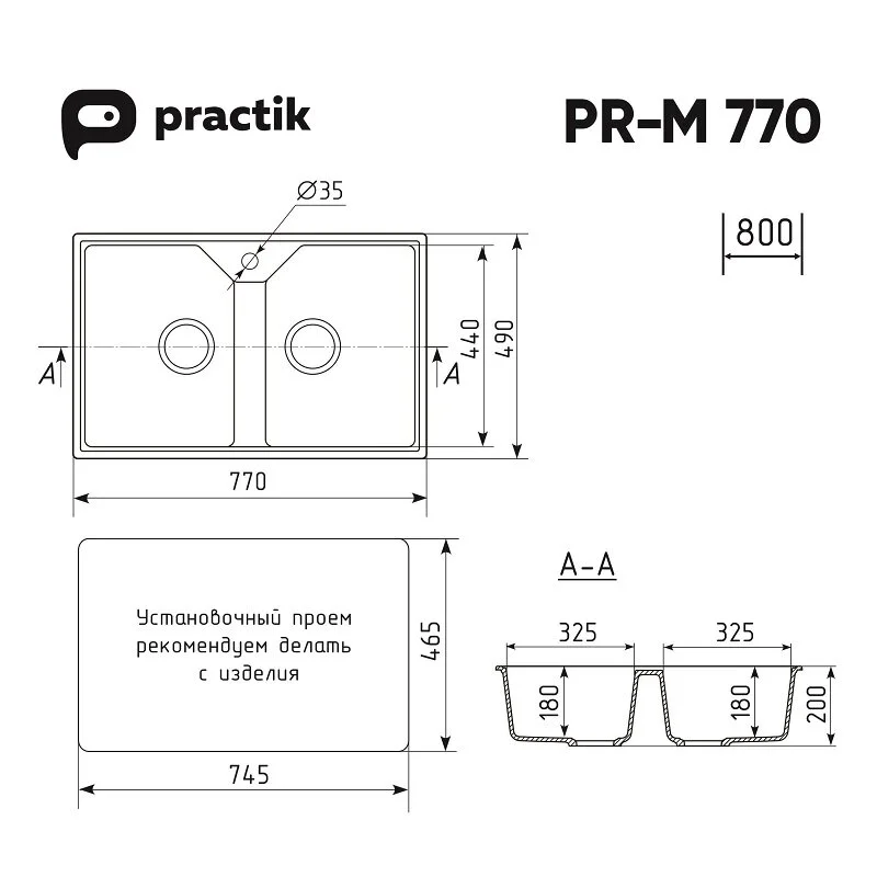 Кухонная мойка Practik черный PR-770-004