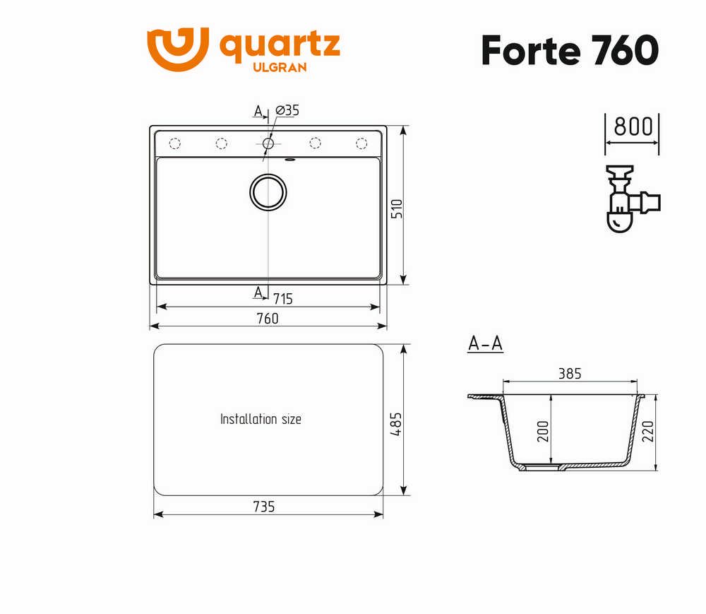 Кухонная мойка ULGRAN Forte 760 Трюфель