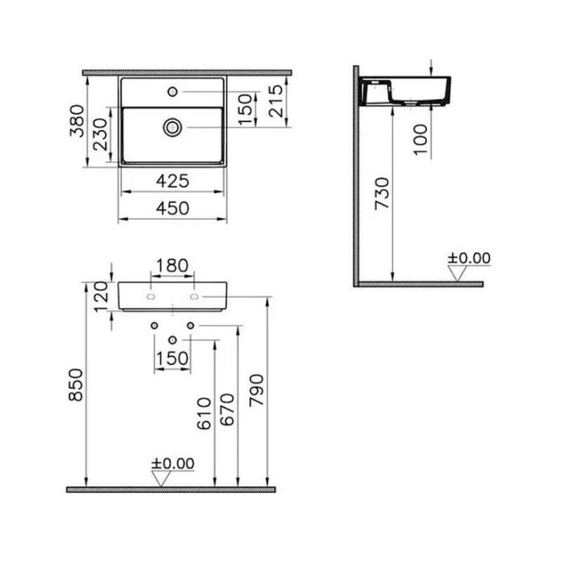 Умывальник накладной VitrA ArchiPlan 45 7400B003-0001