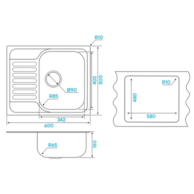 Кухонная мойка KüchenStern BASIS 45 AISI 304/R65 нержавеющая сталь KS-800140