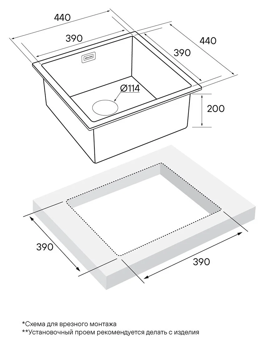 При установке моек из различных природных или искусственных материалов, которые могут повредиться в случае удара или падения, следует воспользоваться помощью напарника.