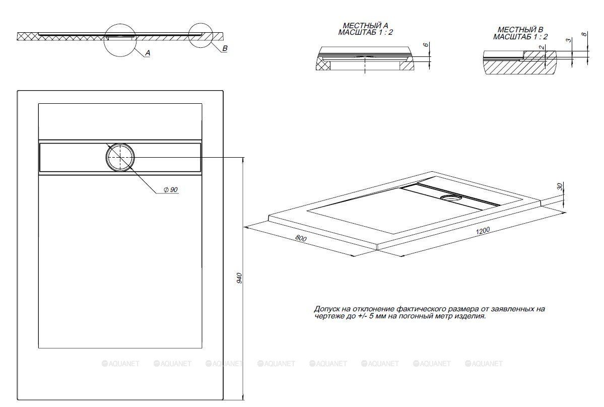 | Глубина поддона | Низкий |