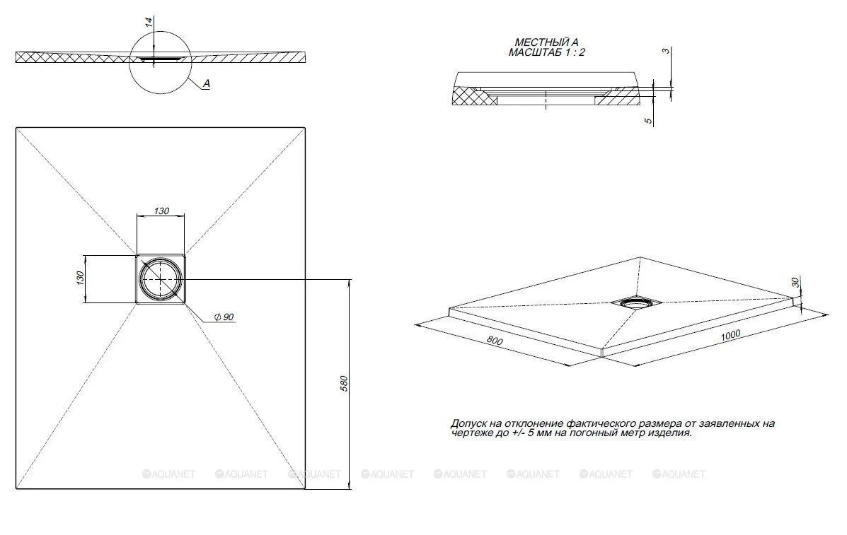 8.31003-PWM Priority, Поддон литьевой 1000х800, без сифона/накладки, папирус