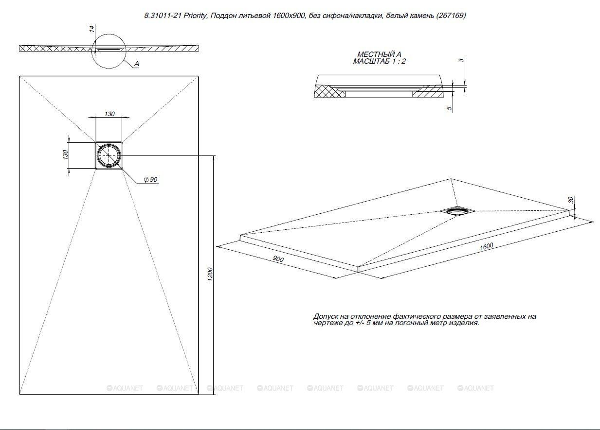 8.31011-AM Priority, Поддон литьевой 1600х900, без сифона/накладки, антрацит