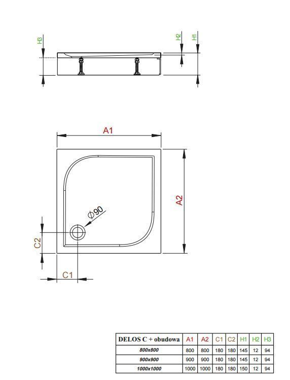 4C11170-03 DELOS C 1000 Квадратный поддон со съемной панелью 1000*1000*150*10