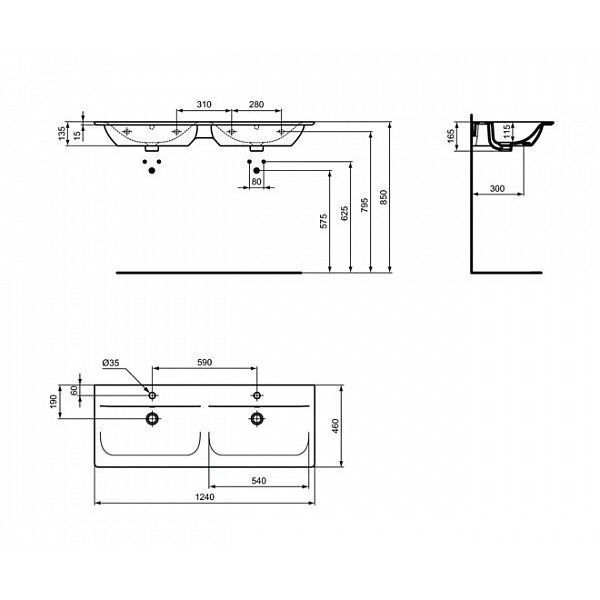 Умывальник двойной на столешницу Ideal Standard Connect Air 124х46 E027301