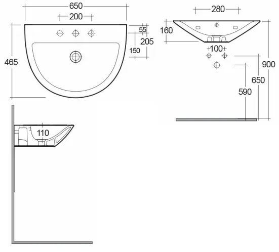 Раковина подвесная 65, белая Rak Ceramics Morning MORWB6501AWHA