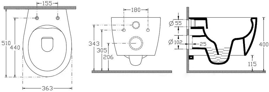 FANTASY, 4.11004.20 Унитаз подвесной, rimless, без сиденья, 510x363мм, белый 269463
