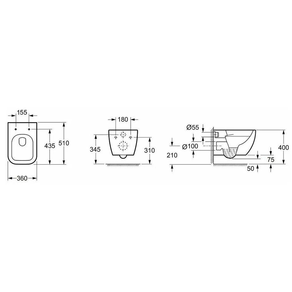 Унитаз подвесной 4.21004.20, Rimless,510x360мм, без сидения, белый 279254