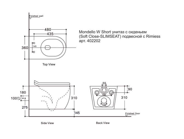 Унитаз с сидением (Soft Close-SLIMSEAT) подвесной с Rimless, черный 402211