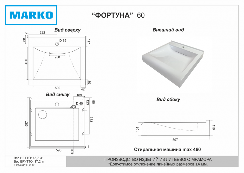 | Материал изготовления | Литьевой мрамор |