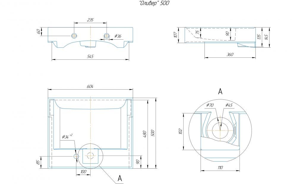 Умывальник для установки над стиральной машиной VALLERI оливер 500