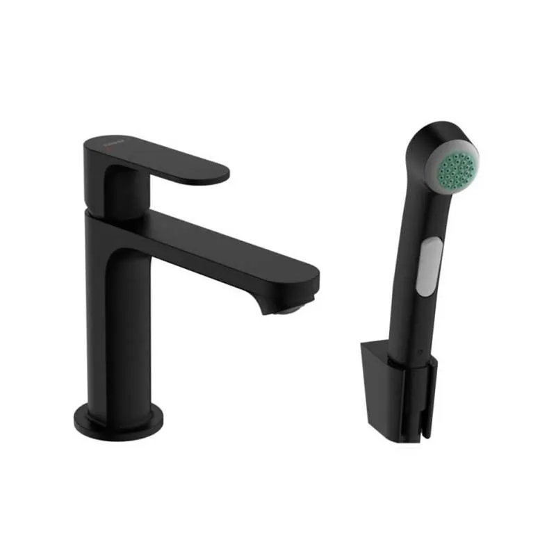 Смеситель для раковины с гигиеническим душем, черный Hansgrohe Rebris S 72215670