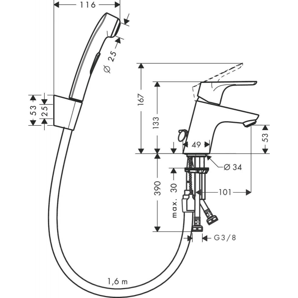 Смеситель для умывальника с гигиеническим душем Hansgrohe Focus E2 31926000