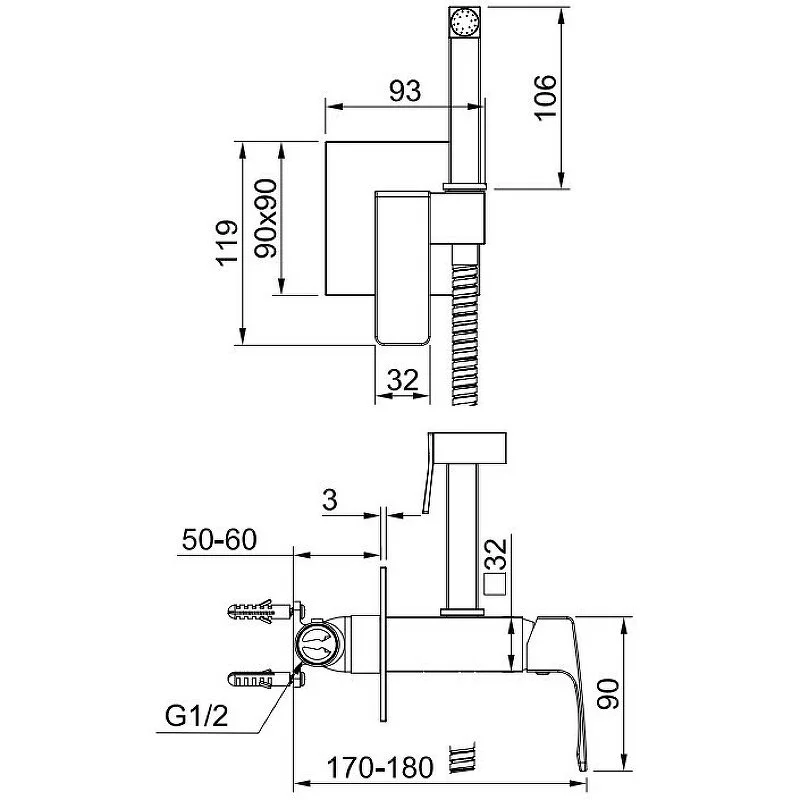 Смеситель с гигиеническим душем встраиваемый Raglo черный R01.52.06