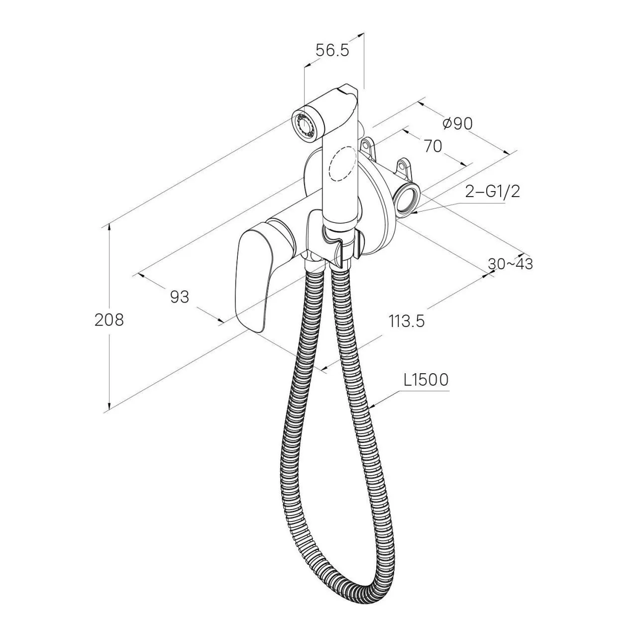 Встраиваемый смеситель с гигиеническим душем, глянцевый хром, Rora, Milardo, RORSBR0M08