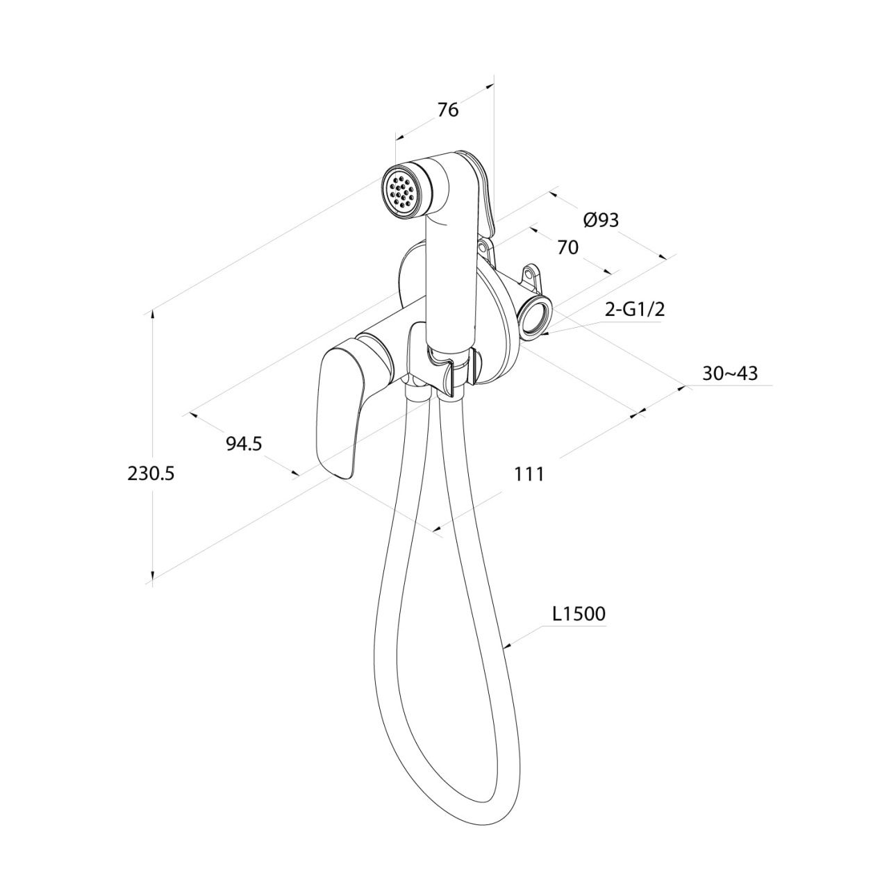 Встраиваемый смеситель с гигиеническим душем, графит, Rora, Milardo, RORGMR0M08