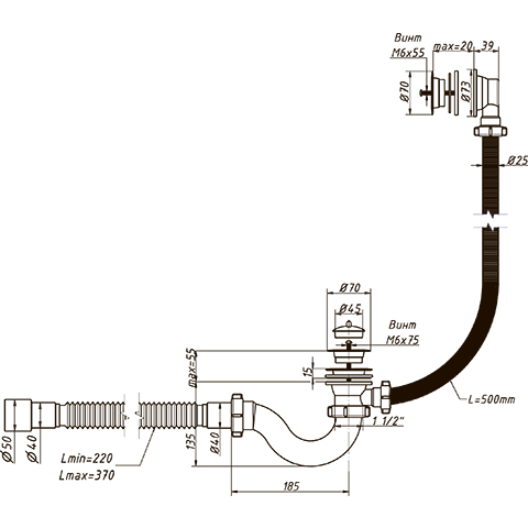 Сифон"Орио"для ванны А-70089 с пласт.вып. и гибкой трубой