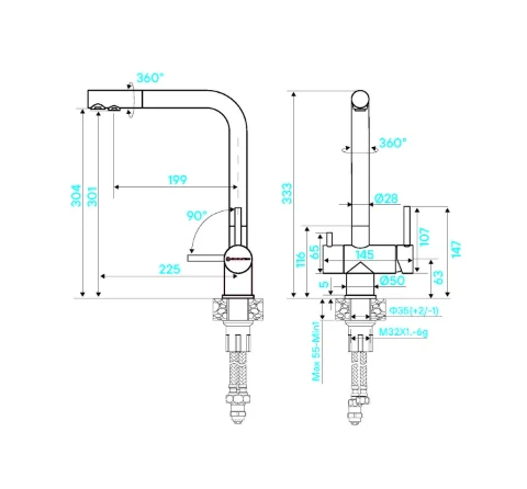 | Излив | Высокий / Поворотный |
