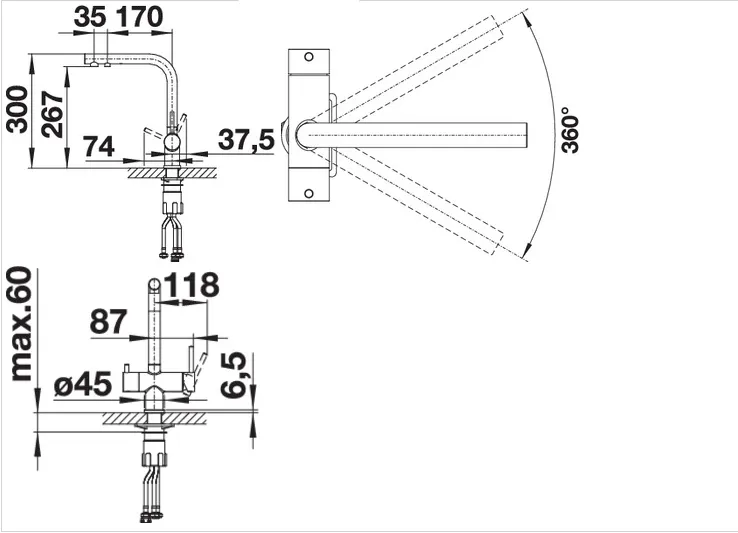 | Излив | Высокий / Поворотный |