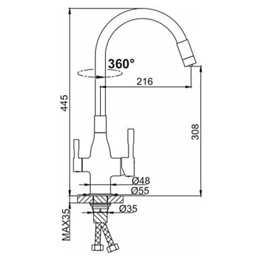 СМЕСИТЕЛЬ ДЛЯ КУХНИ С ГИБКИМ ИЗЛИВОМ FRAP H69 F4396-6
