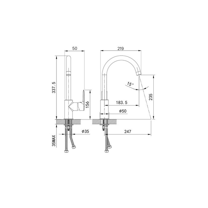 Смеситель для кухни, состаренная медь, Cuba, IDDIS, CU3MBJ0i05