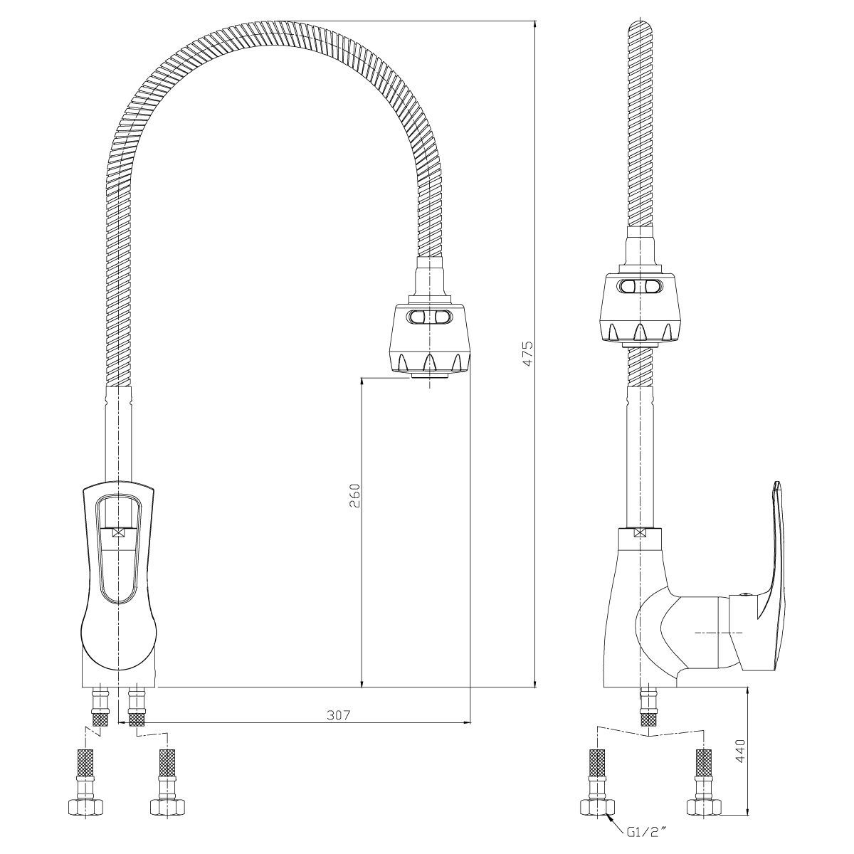Смеситель Rossinka T40-26 для кухни с гибким изливом