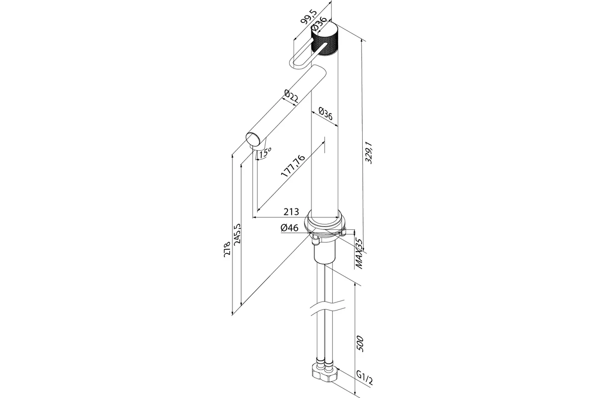 Смеситель для настольного умывальника, матовый графит, Duna, DUNGM01i01
