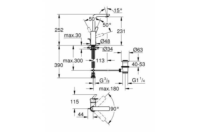 Смеситель для раковины с донным клапаном, размер L, хром Grohe Lineare 23296001