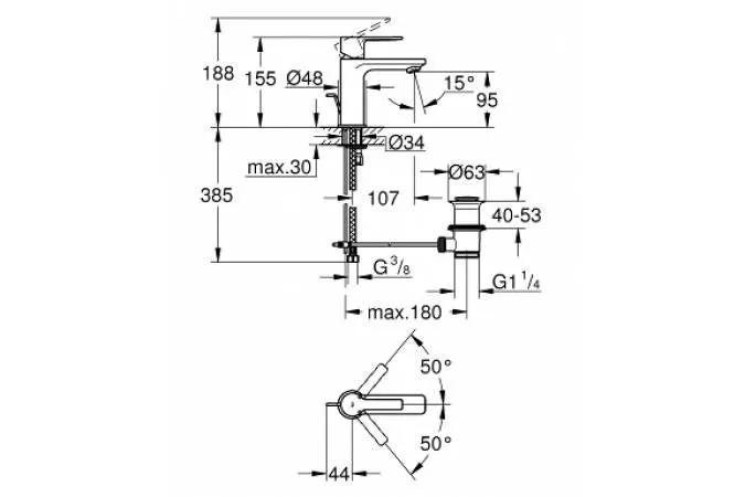 Смеситель для раковины с донным клапаном, размер XS, хром Grohe Lineare 32109001