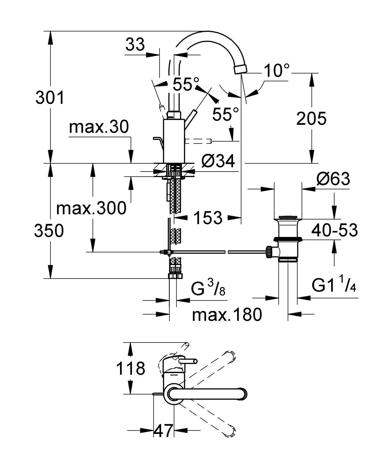 Смеситель для умывальника Grohe Concetto L-Size 32629001