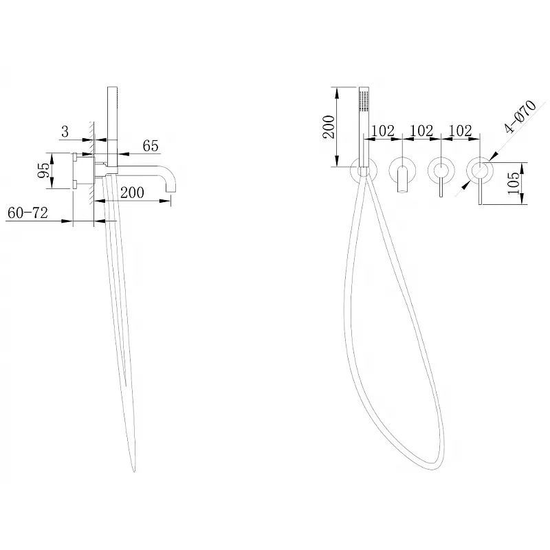 Смеситель для ванны и душа Abber Wasser Kreis AF8130, с душевым гарнитуром, цвет хром