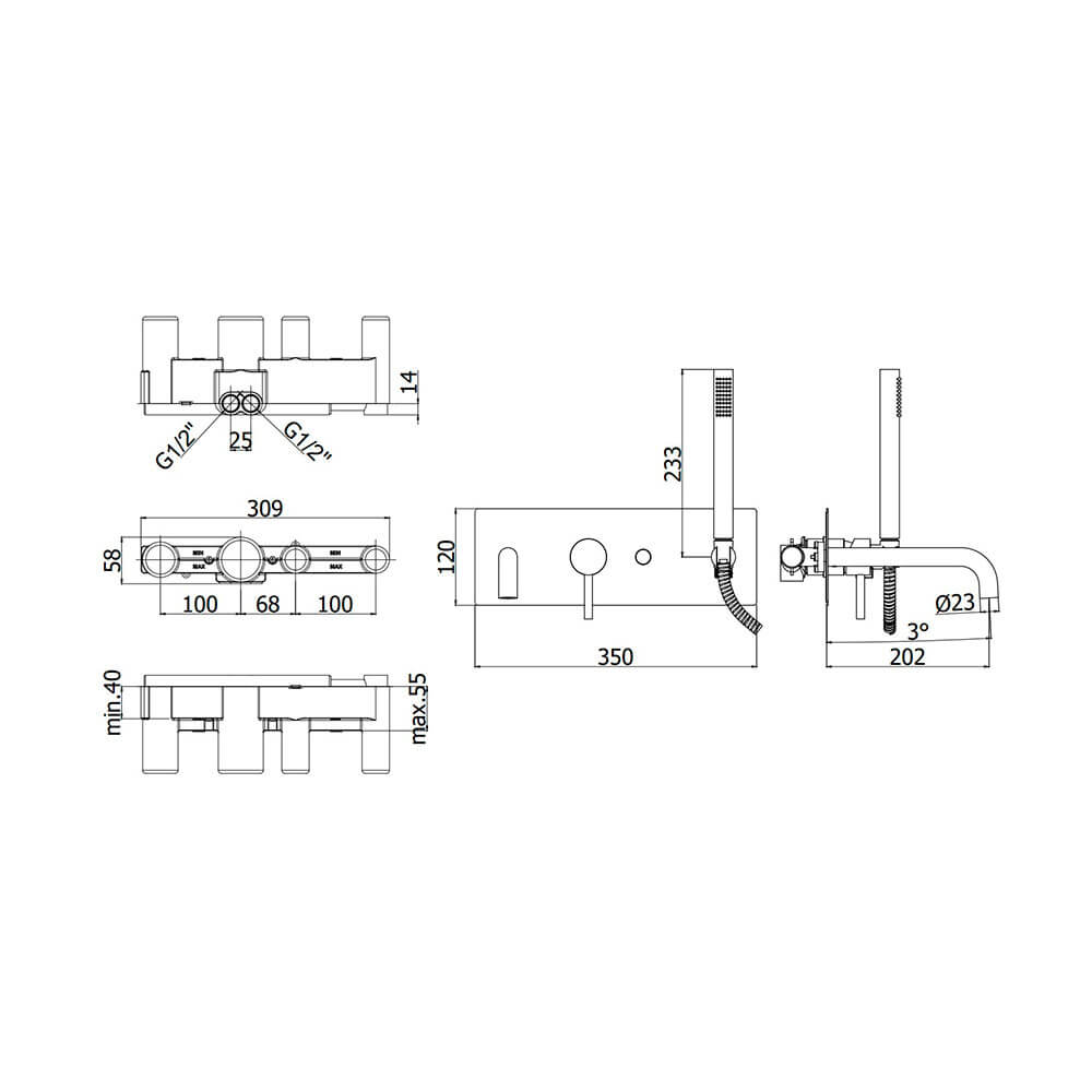 Смеситель для ванны Paffoni Light (цвет - сталь) LIG001ST