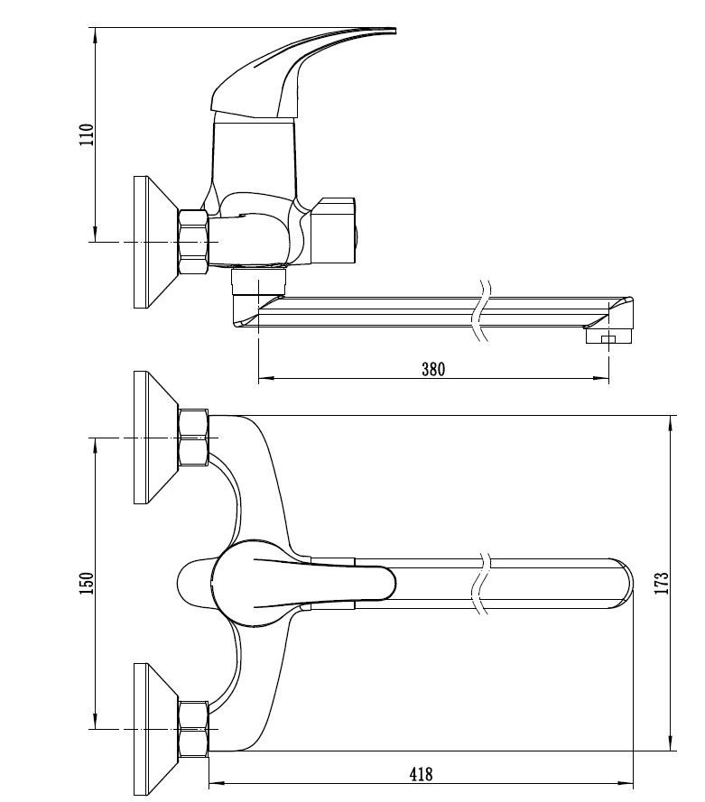Смеситель для ванны, длинный излив, хром ESKO MOON 31