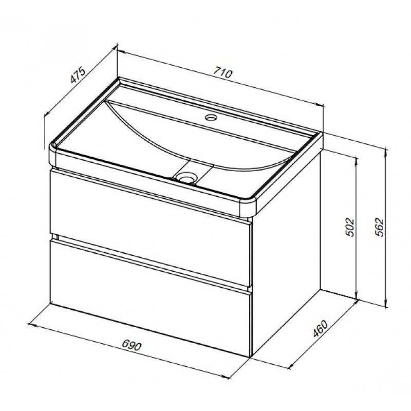 Тумба с раковиной Вега 70 2 ящ. цв.белый глянец (308335)