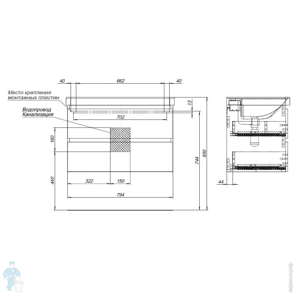 Тумба с раковиной Вега 80 2 ящ. цв.маренго 329591