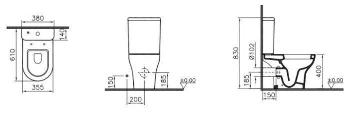 Унитаз-компакт безободковый Vitra Zentrum 9824B003-7207