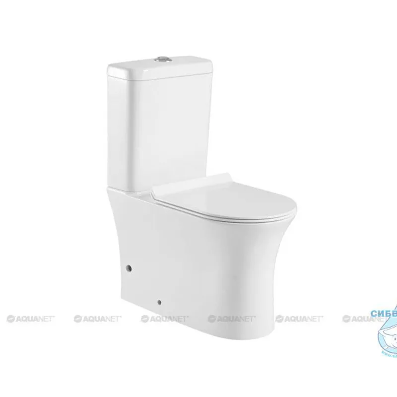 Унитаз напольный безободковый Aquanet Rimless Roll 210764+210765 с сиденьем Soft Close микролифт CL-12249B
